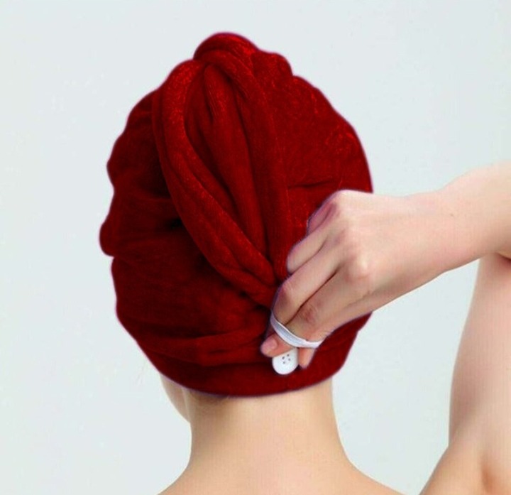 An amazing cap-shaped towel that can be twisted into position. – Designed to fit your head perfectly, much better and easier to use to wrap your hair than a conventional towel. – Super water-absorbent ability, fast and easy without an electric hair blower to dry your hair. – Button & loop for keeping it.
